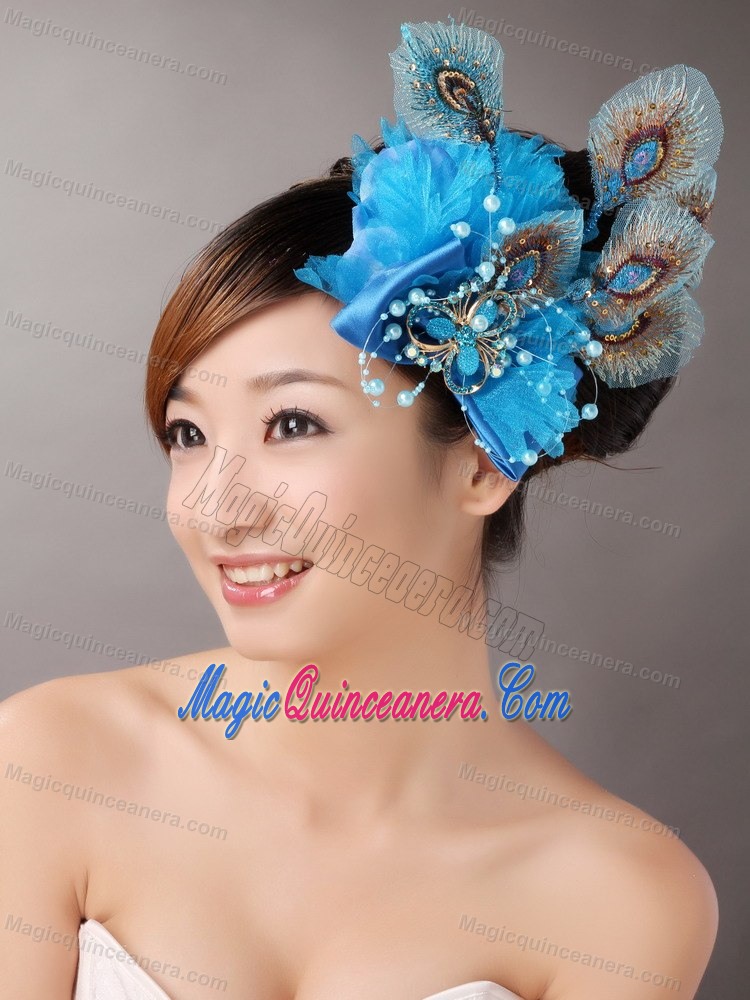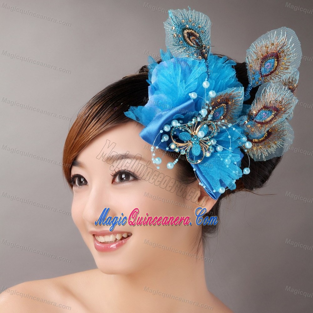 , 2013 Peacock Blue Feathers Headpieces Beading For Party