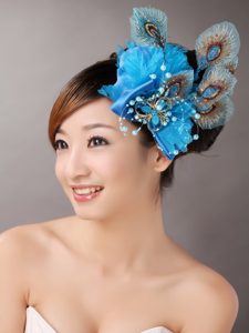 2013 Peacock Blue Feathers Headpieces Beading For Party