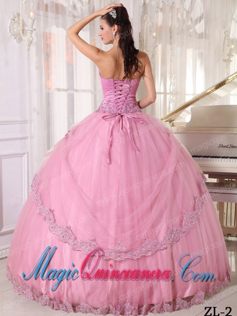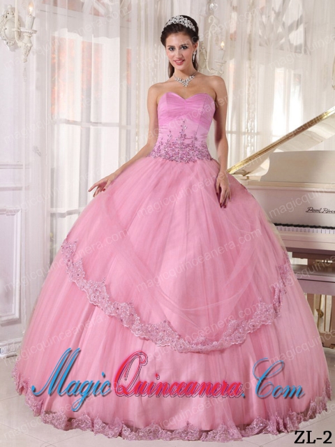 2014 Cheap Pink Ball Gown Sweetheart Appliques Quinceanera Dress