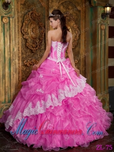 2014 Hot Pink Ball Gown Strapless Floor-length Ruffles Organza Quinceanera Dress