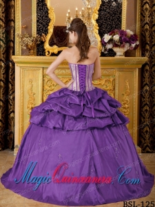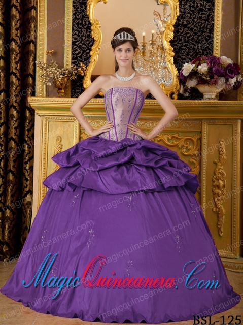 latest quinceanera gowns in variety of size and style, 2014 Purple Ball Gown Strapless Floor-length Appliques Taffeta Quinceanera Dress