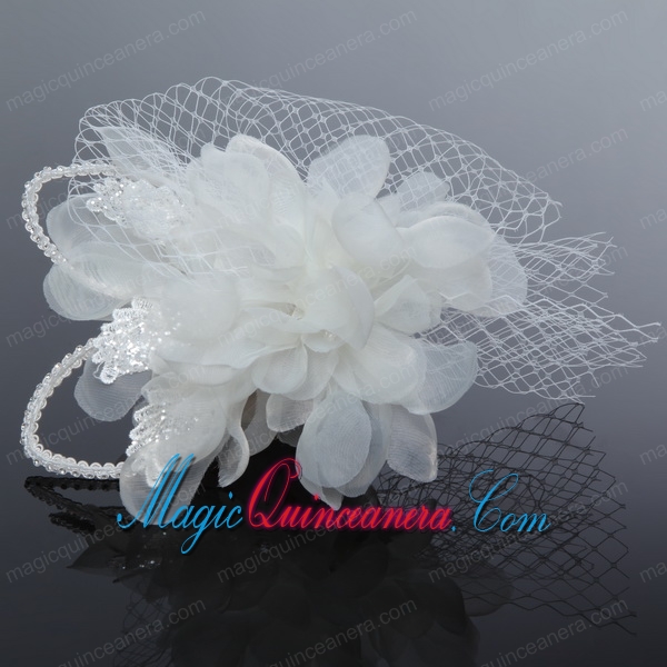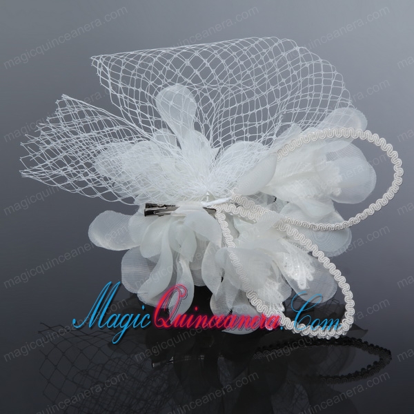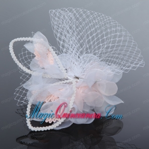 2014 Romantic Feather Pearl Tulle White Fascinators