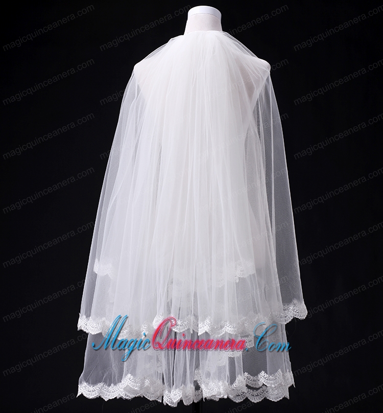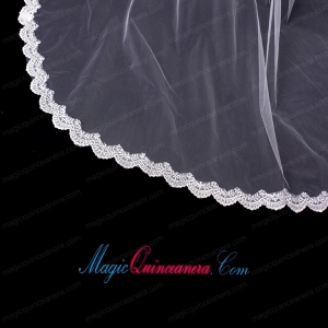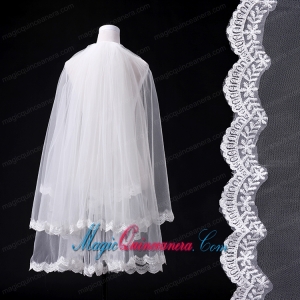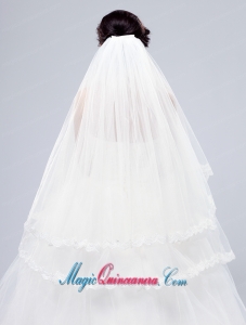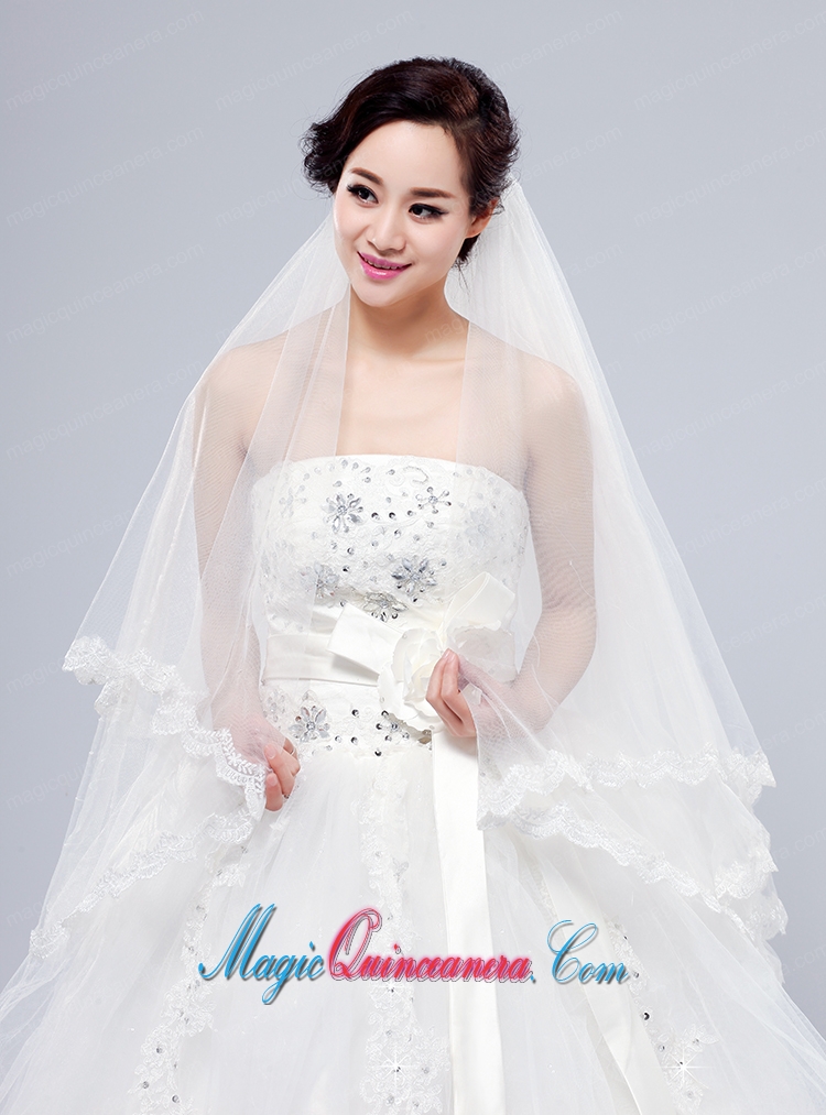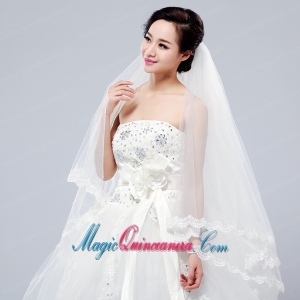 2014 Simple Four-Tier Bridal Veils with Lace Appliques Edge