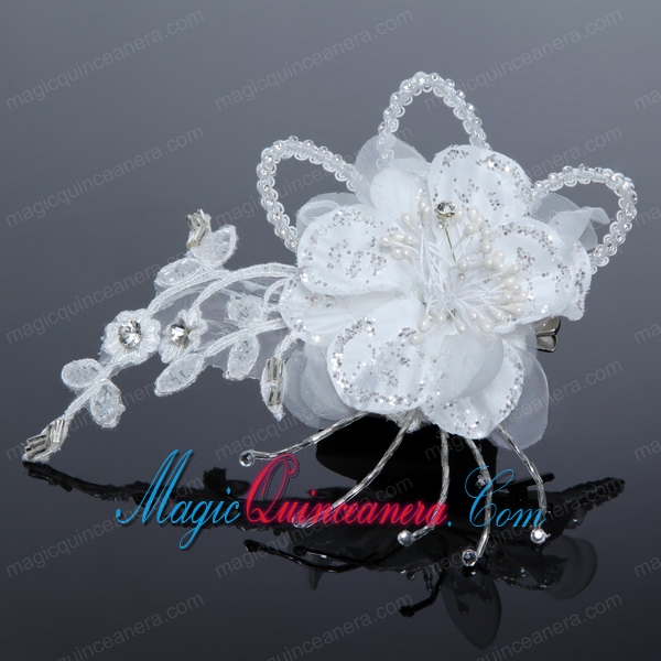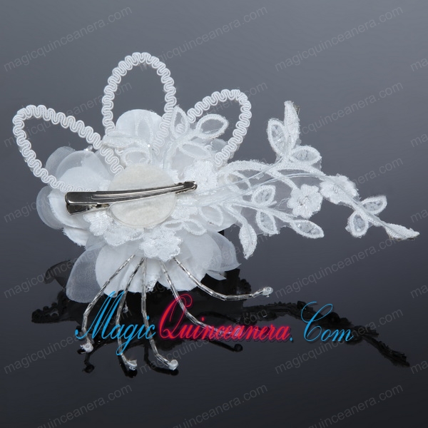 2014 White Pearl Lace and Feather Tulle Fascinators