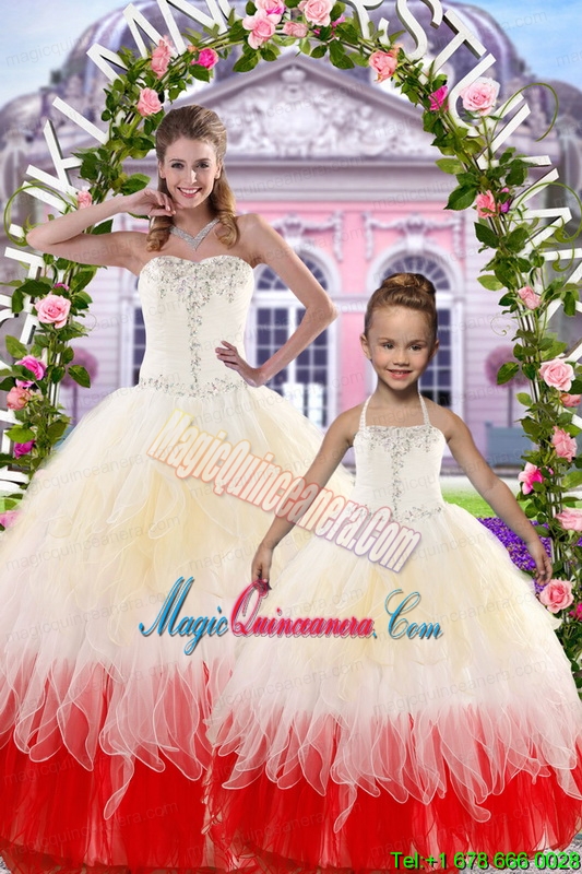 , 2015 Ball Gown Multi-color Princesita Dress with Beading and Ruffles