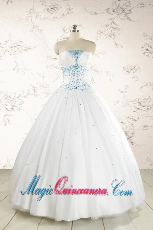 2015 Beautiful Appliques and Beading White Quinceanera Dresses
