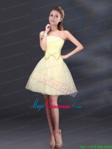 2015 Bowknot A Line Strapless Mother of the Bride Dresses with Lace Up