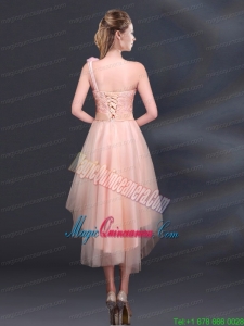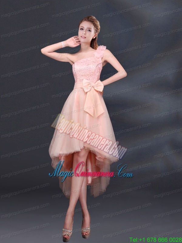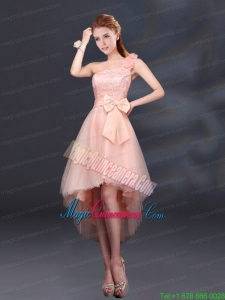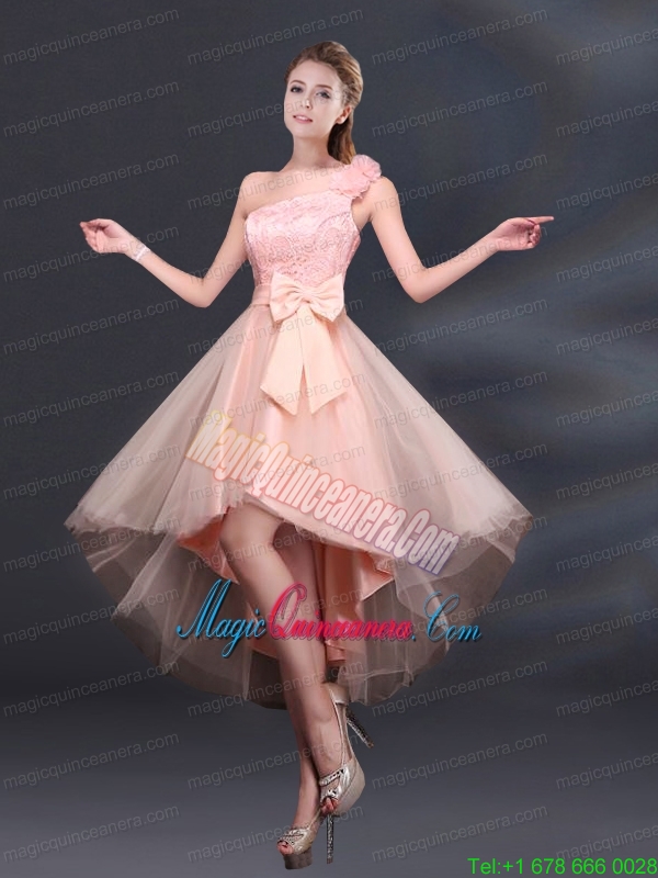 2015 Bowknot High Low Lace Up Mother Dress for Quinceanera with One Shoulder