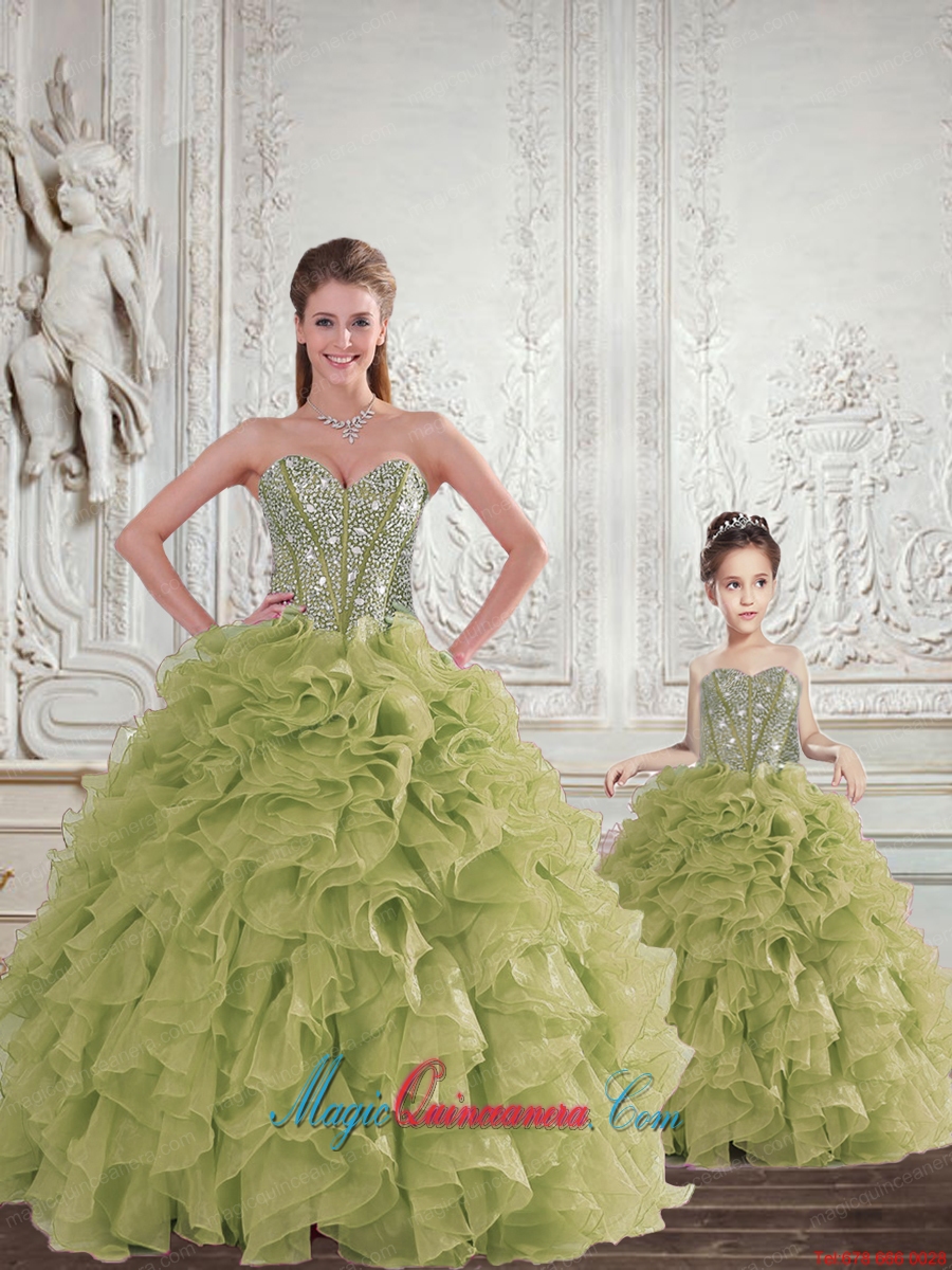 2015 Brand New Beading and Ruffles Olive Green Princesita Dress