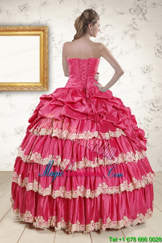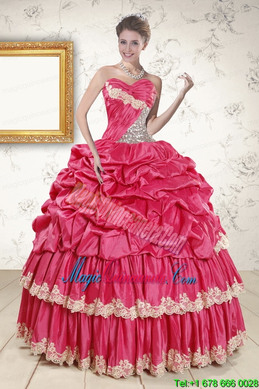 , 2015 Cheap Appliques Sweet 15 Dresses in Coral Red
