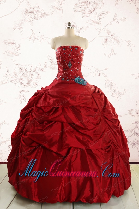 2015 Cheap Strapless Quinceanera Dresses with Beading