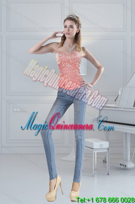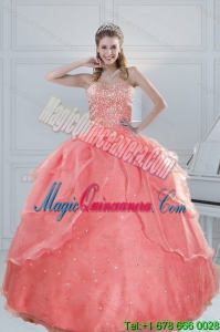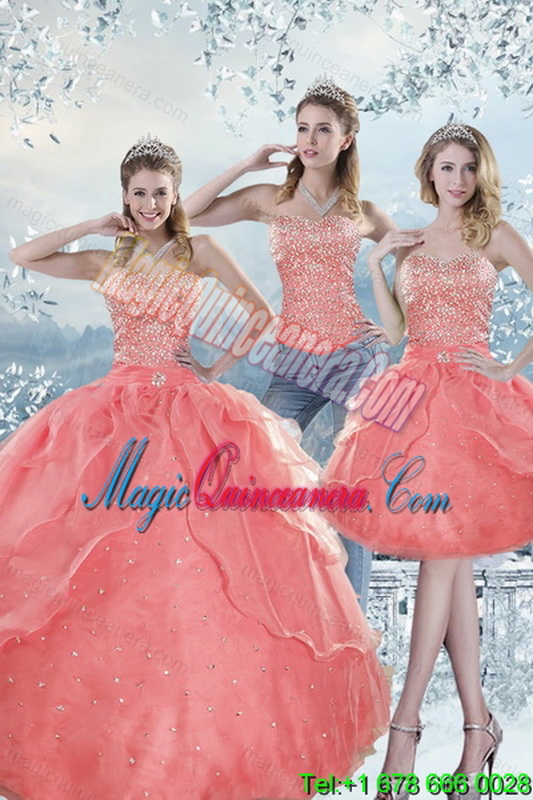, 2015 Detachable Watermelon Quinceanera Dresses with Beading