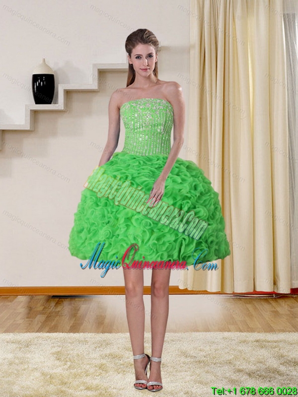 2015 Discount Spring Green High Low Dama Dresses with Beading