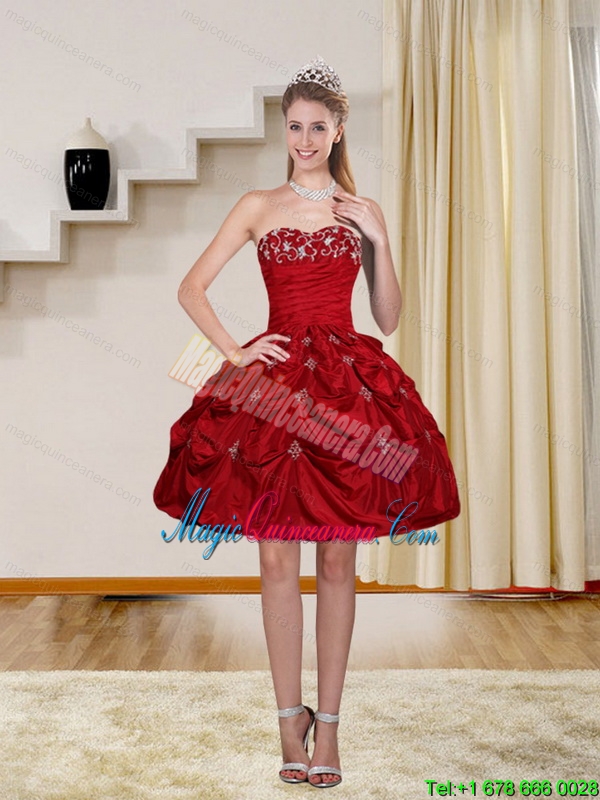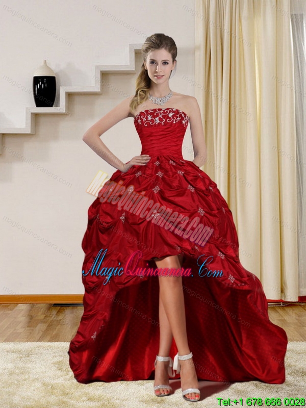 2015 Discount Strapless Red Dama Dresses with Embroidery and Pick Ups