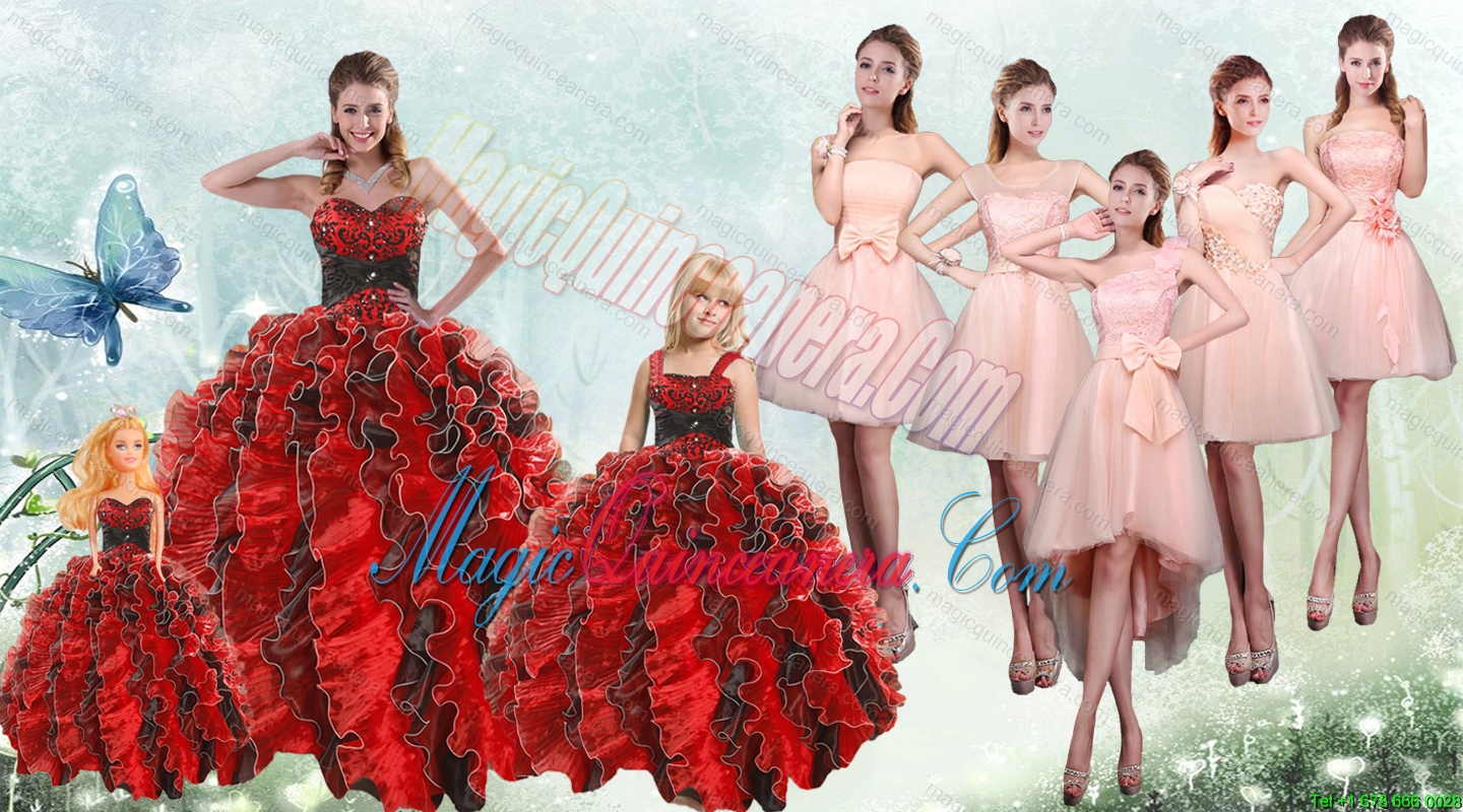, 2015 Elegant Ruffles Multi Color Sweet 15 Dresse and Pretty Short Dama Dresses and Beading and Ruffles Litter Girl Dress