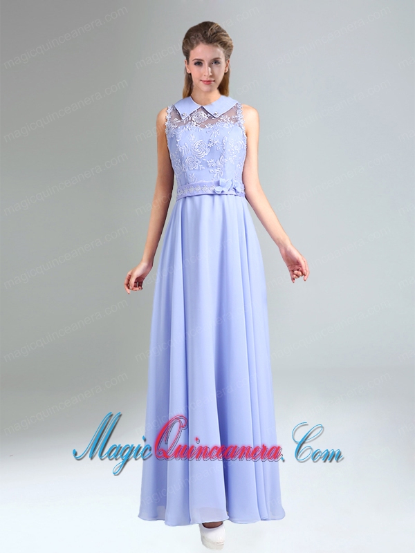 chiffon floor length dama dress for girls, 2015 Empire Lace Up Dama Dress Belt and Lace