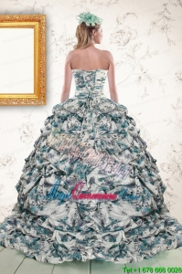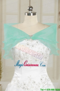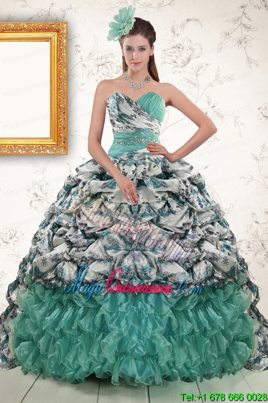2015 Exquisite Turquoise Sweep Train Quinceanera Dresses with Beading and Picks Ups2015 Exquisite Turquoise Sweep Train Quinceanera Dresses with Beading and Picks Ups