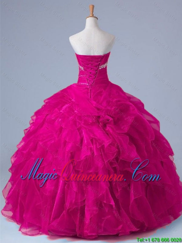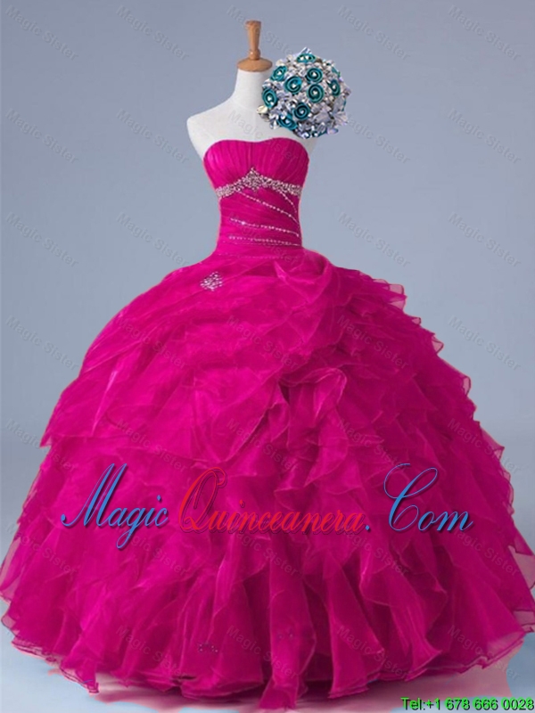 2015 Fall Elegant Strapless Beaded Quinceanera Gowns in Fuchsia