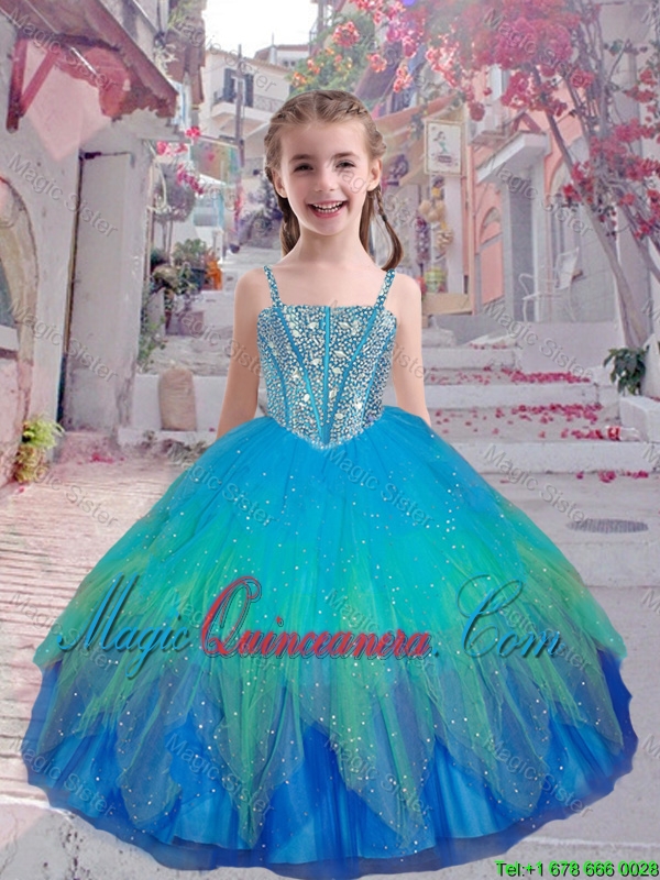 , 2015 Fall New Style Straps Multi Color Mini Quinceanera Dresses with Beading