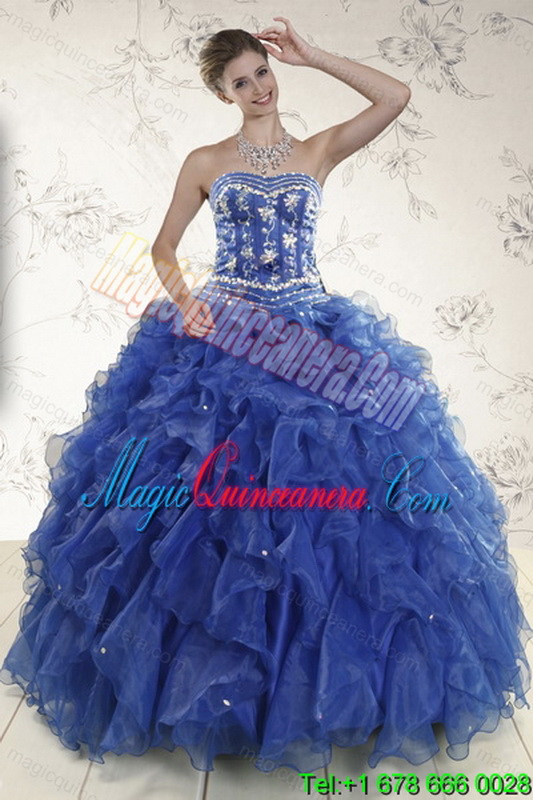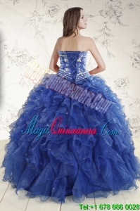 , 2015 Fashion Royal Blue Quince Dresses with Beading and Ruffles