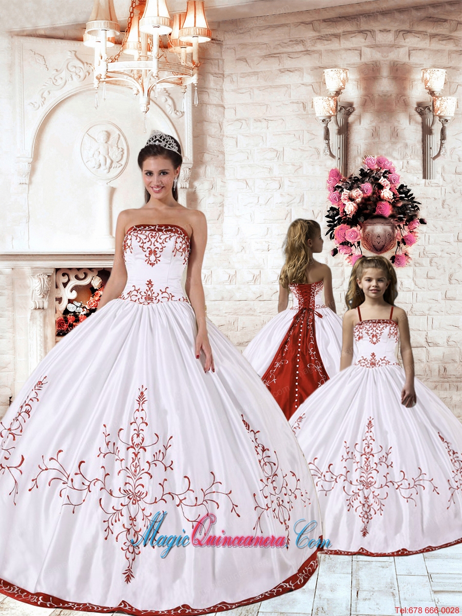 , 2015 Fashionable Red Embroidery White Princesita Dress
