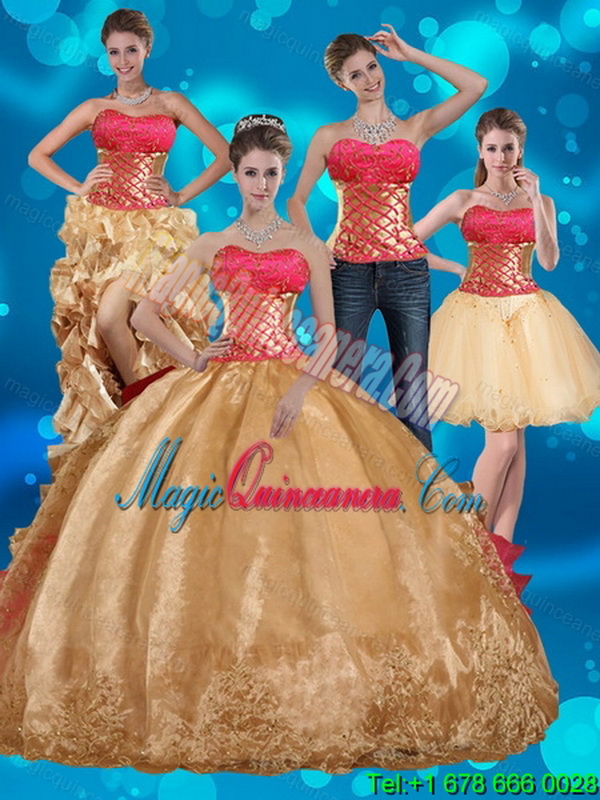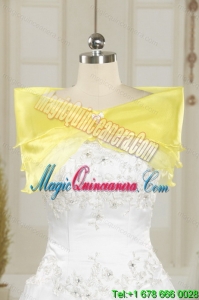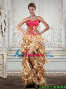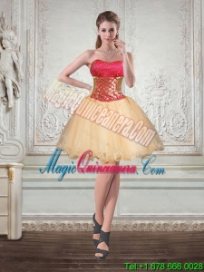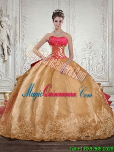 , 2015 Gold Strapless Sweet 15 Quince Dress with Beading and Embroidery