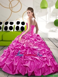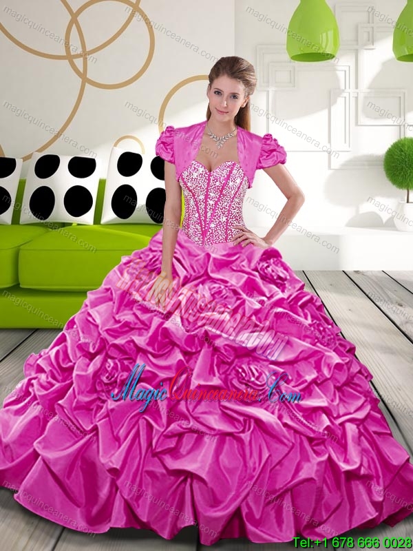 , 2015 Gorgeous Fuchsia Dress for Quince with Beading and Pick Ups