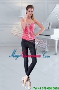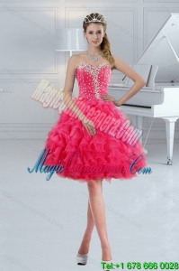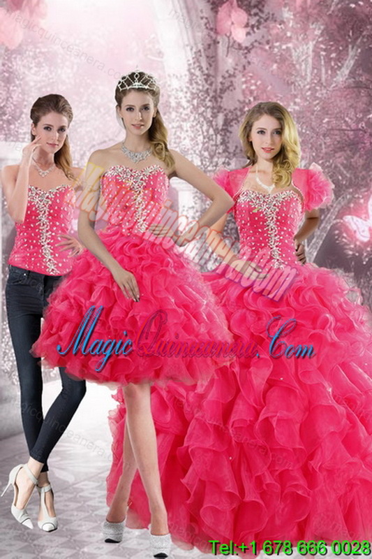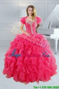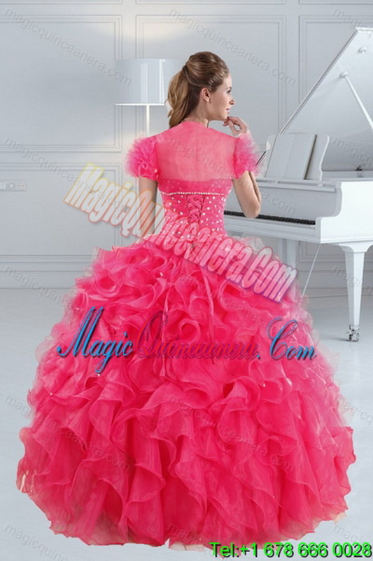 , 2015 Gorgeous Hot Pink Sweetheart Sweet 15 Dresses with Beading and Ruffles