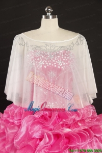 2015 Hot Pink Strapless Quinceanera Dresses with Beading and Ruffles