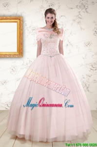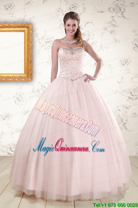 , 2015 Lovely Light Pink Beading Quinceanera Dresses