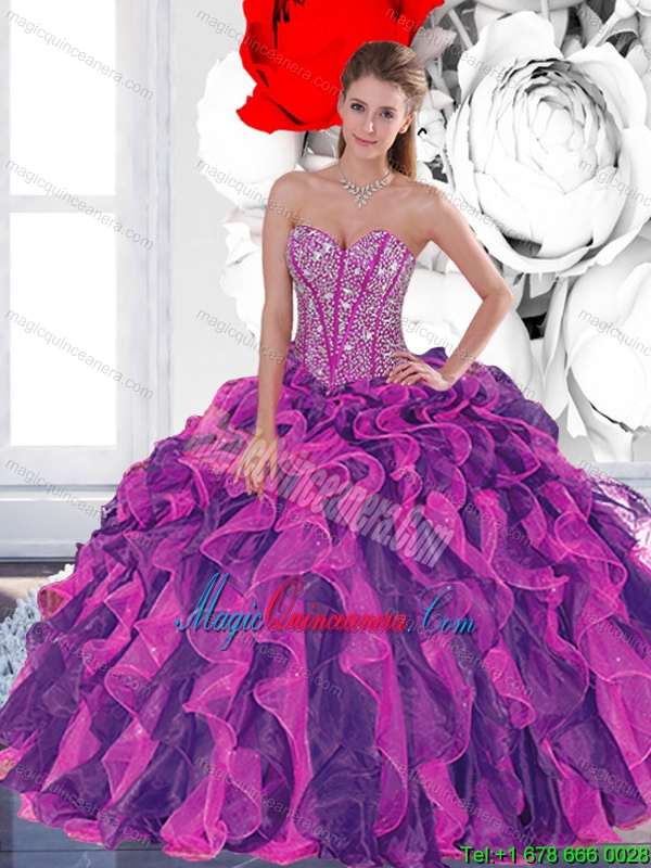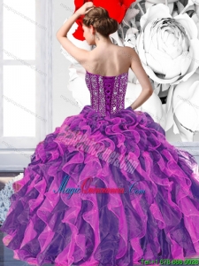 , 2015 Luxurious Beading and Ruffled Layers Quinceanera Dresses in Multi Color