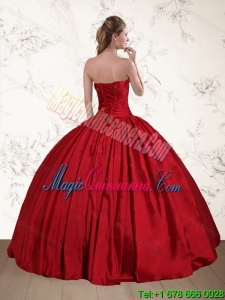, 2015 Luxury Strapless Beaded Floor Length Quinceanera Dress in Red