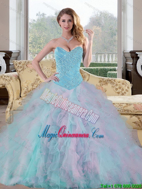 , 2015 Luxury Sweetheart Multi Color Sweet 15 Dresses with Beading and Ruffles