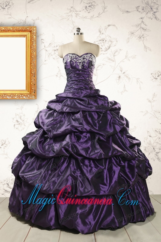, 2015 Modern Sweetheart Purple Quinceanera Dresses with Appliques