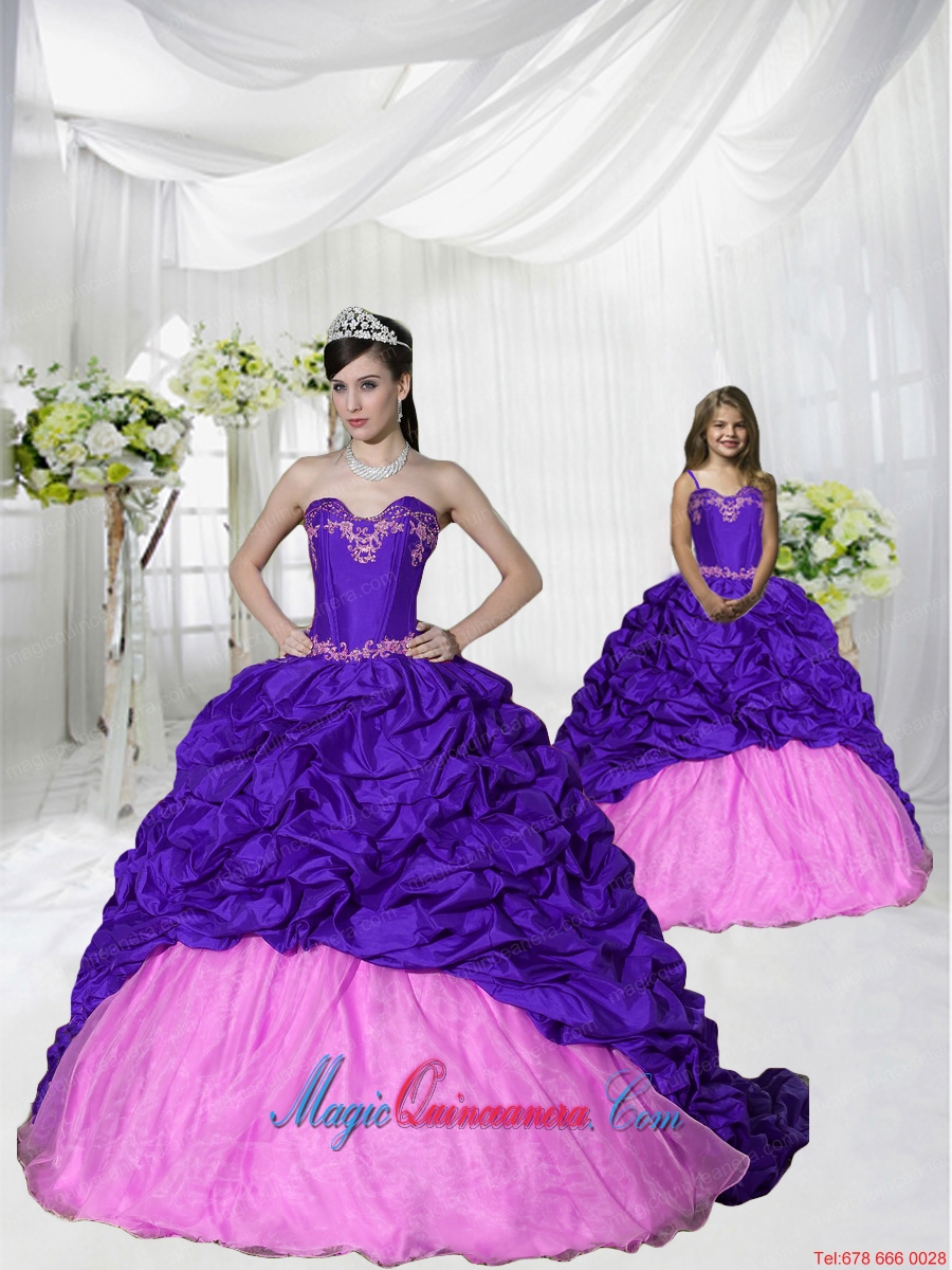 2015 New Arrival Appliques and Pick-ups Brush Train Purple Princesita Dress