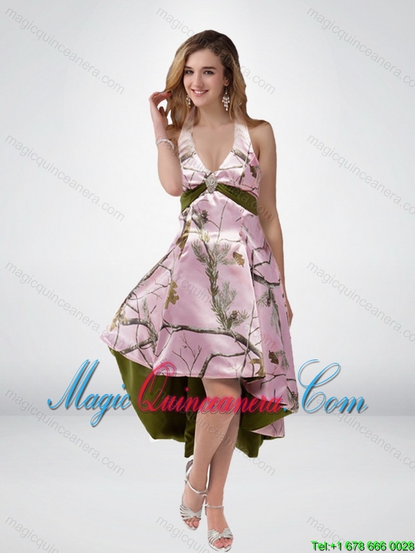 sassy sweet 16 dresses for cocktail party, 2015 New Arrival Multi Color High Low Camo Dama Dresses with Sashes