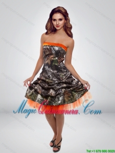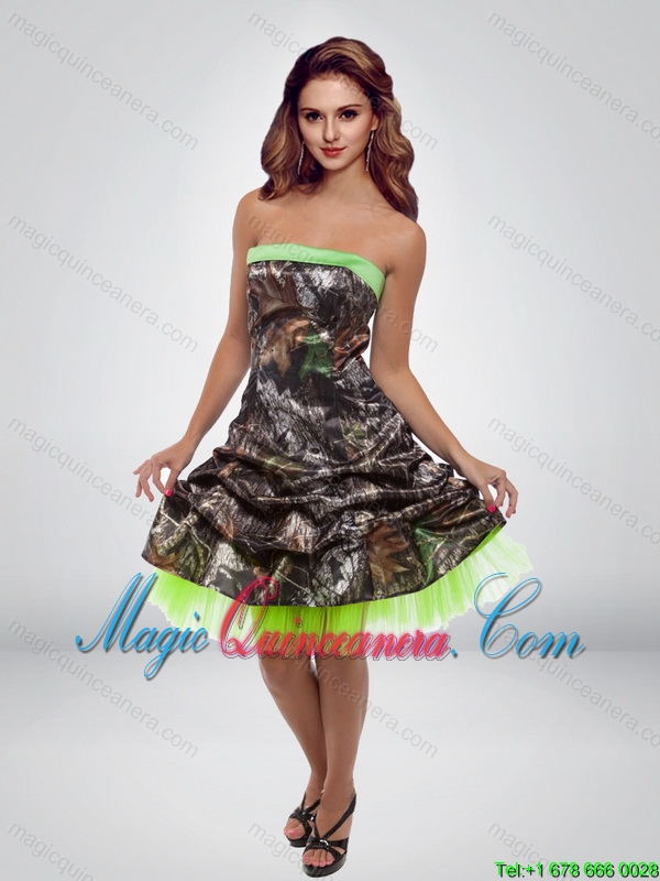 2015 New Arrival Short Strapless Camo Dama Dresses with Ruching