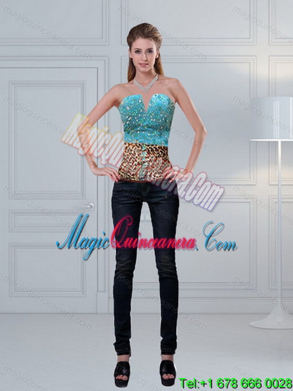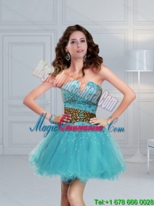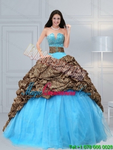 2015 New style and Unique Leopard Print Baby Blue Quinceanera Dresses with Brush Train and Beading