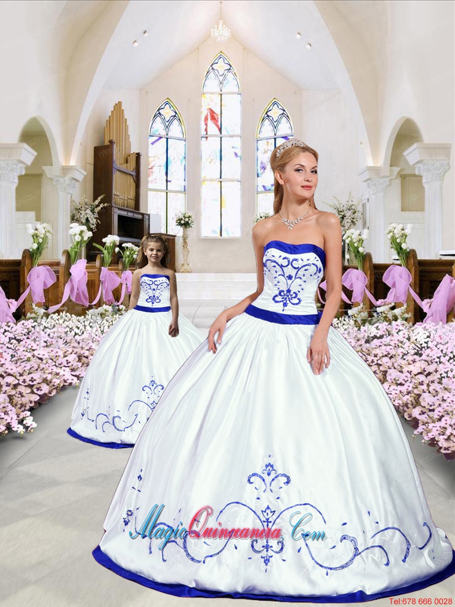 2015 New Style Embroidery Princesita Dress in White and Royal Blue