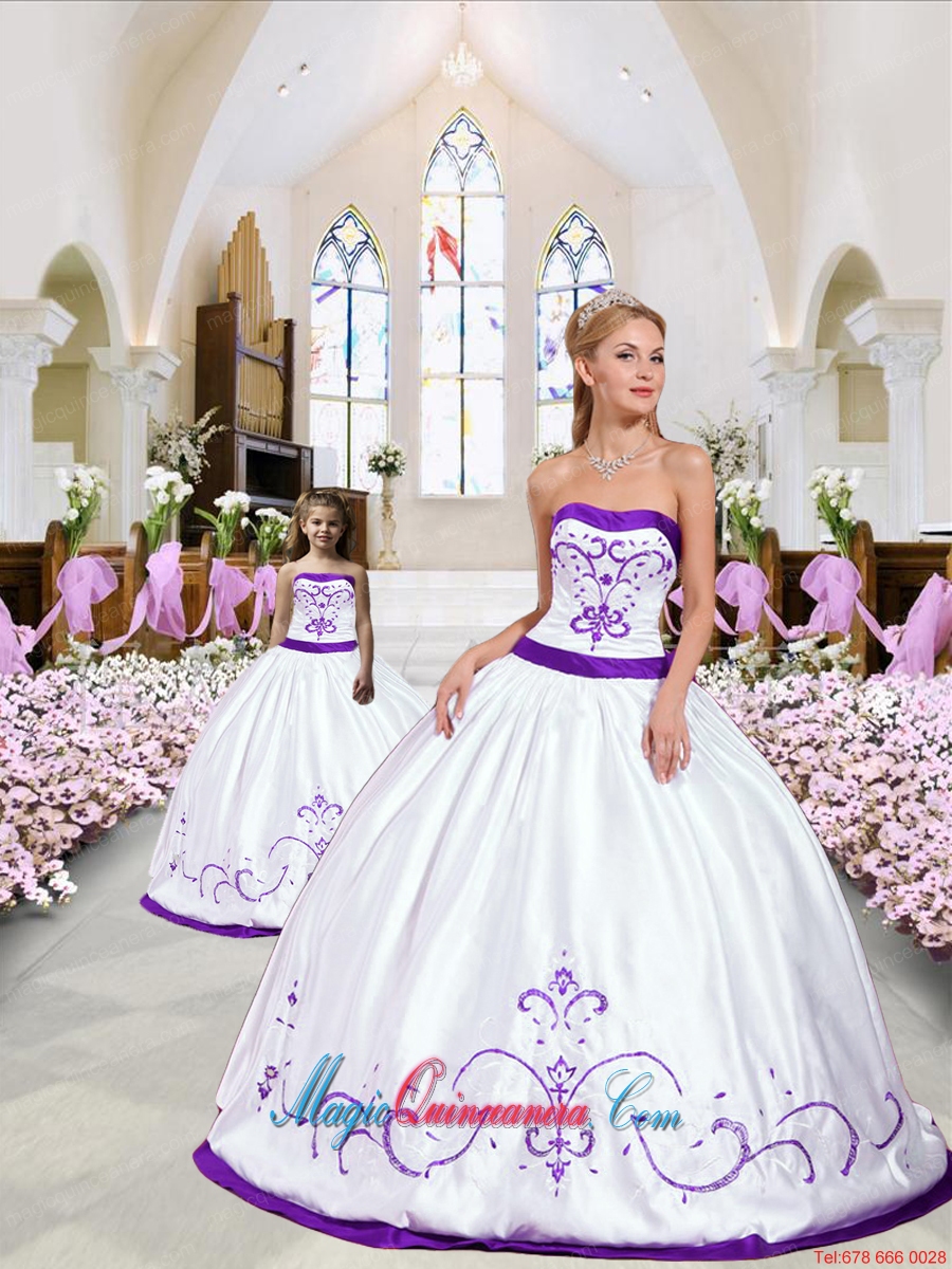 2015 New Style Embroidery White and Eggplant Purple Princesita Dress