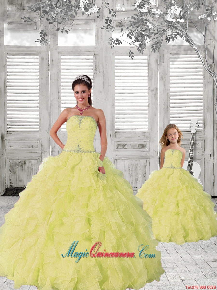 2015 New Style Light Yellow Princesita Dress with Beading and Ruching