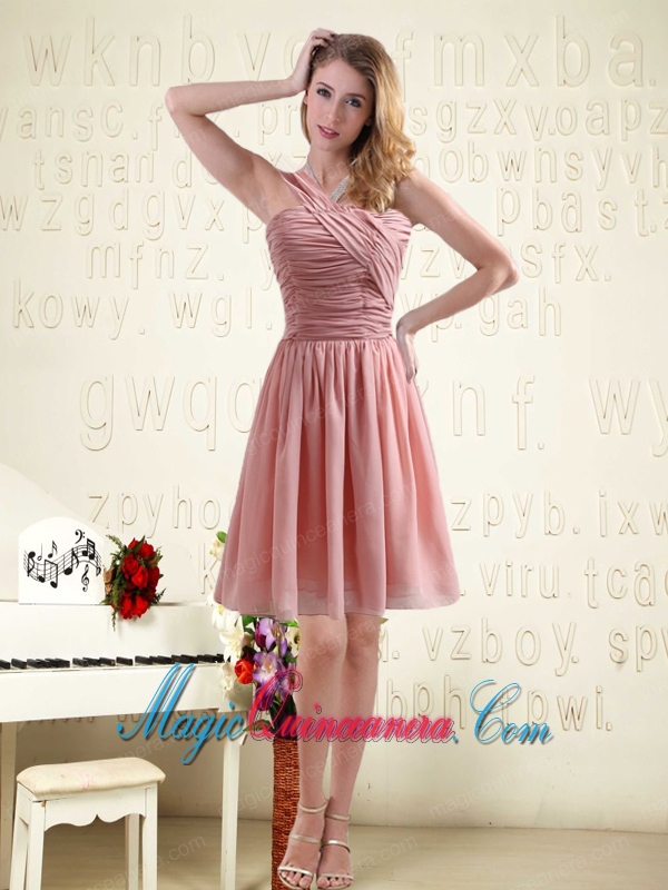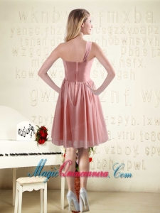 best pretty prom dresses for dama with mini length, 2015 One Shoulder Ruching Empire Chiffon Luxurious Dama Dresses