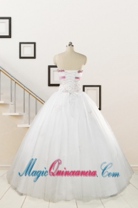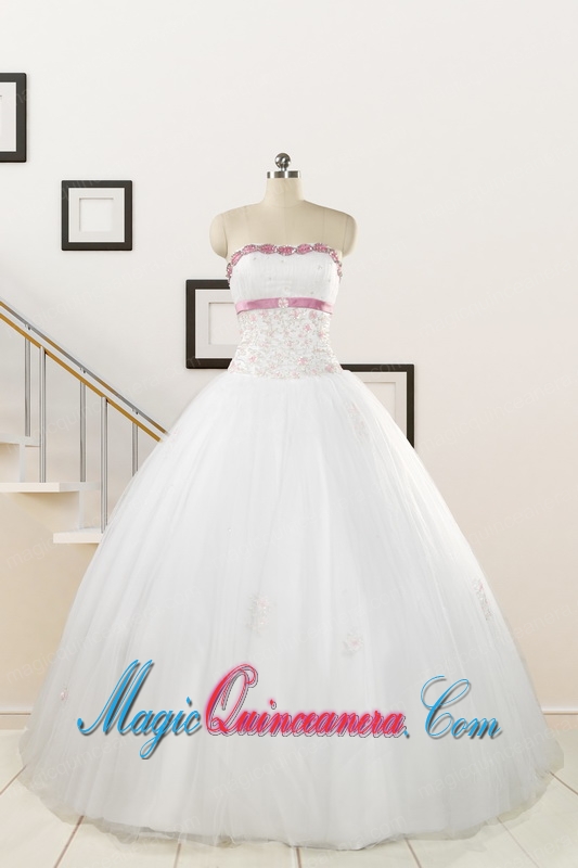 2015 Perfect White Strapless Appliques and Belt Quinceanera Dresses