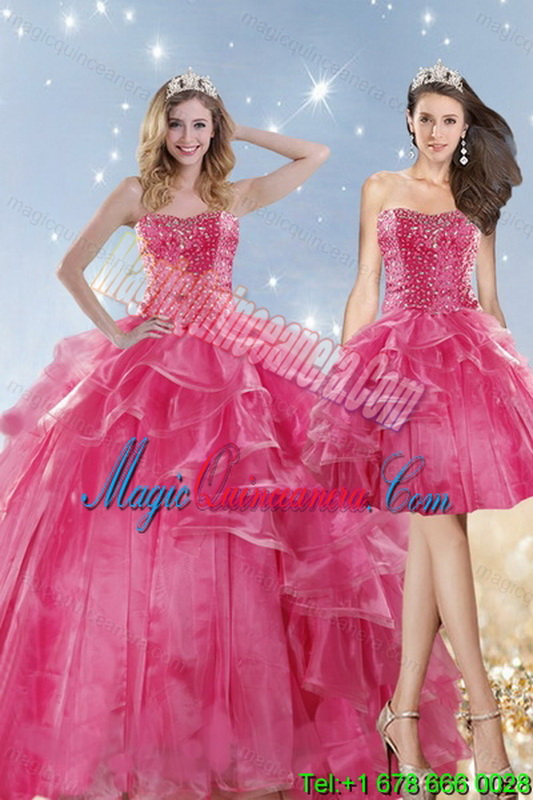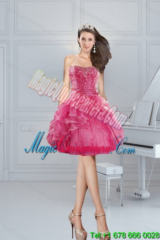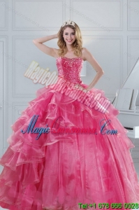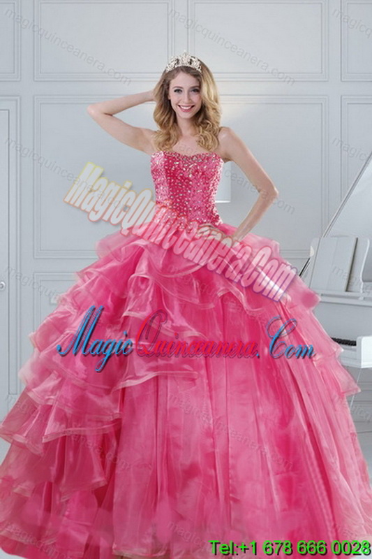 , 2015 Popular and Hot Selling Pink Dresses for Quinceanera with Beading and Ruffles