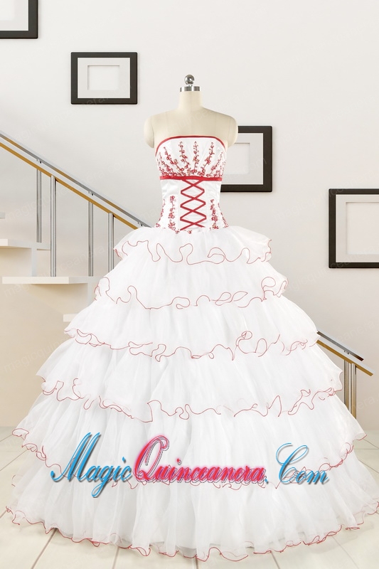 2015 Pretty Appliques Quinceanera Dresses with Strapless