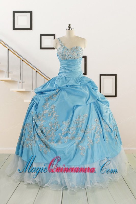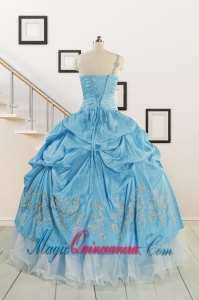 , 2015 Pretty One Shoulder Appliques Quinceanera Dresses in Aqua Blue