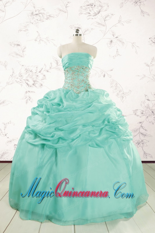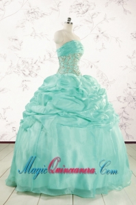 2015 Pretty Puffy Apple Green Sweet 16 Dresses with Beading