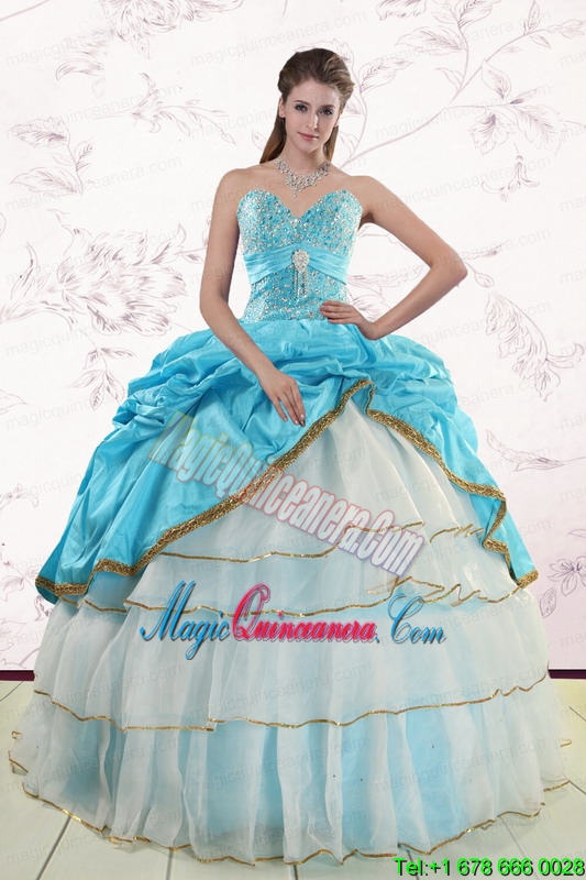 , 2015 Pretty Sweetheart Aqua Blue Quinceanea Dresses with Beading