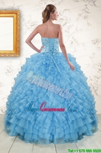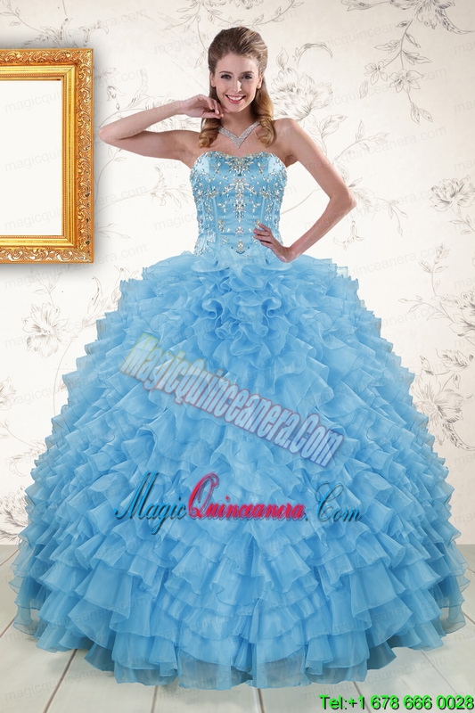 2015 Pretty Sweetheart Baby Blue Sweet 15 Dresses with Beading