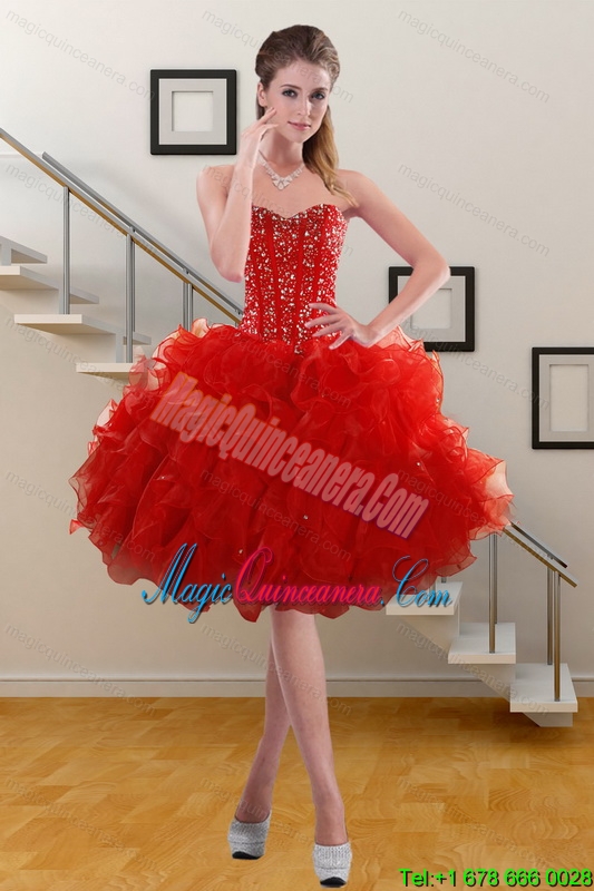 2015 Pretty Sweetheart Red Dama Dresses with Beading and Ruffles